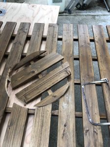 板の方を型取りし糸鋸を使ってカットします。