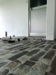 そしてこのレンガ調のフロアタイルを敷いていきます。
